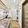 Vedle kuchyně je koupelna spojená s toaletou, vybavená vanou a topným žebříkem.